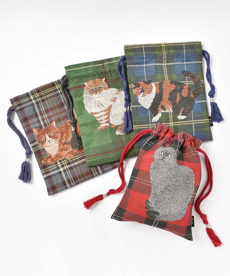 人気イラストレーター松尾ミユキさんが描く可愛らしいネコの巾着。