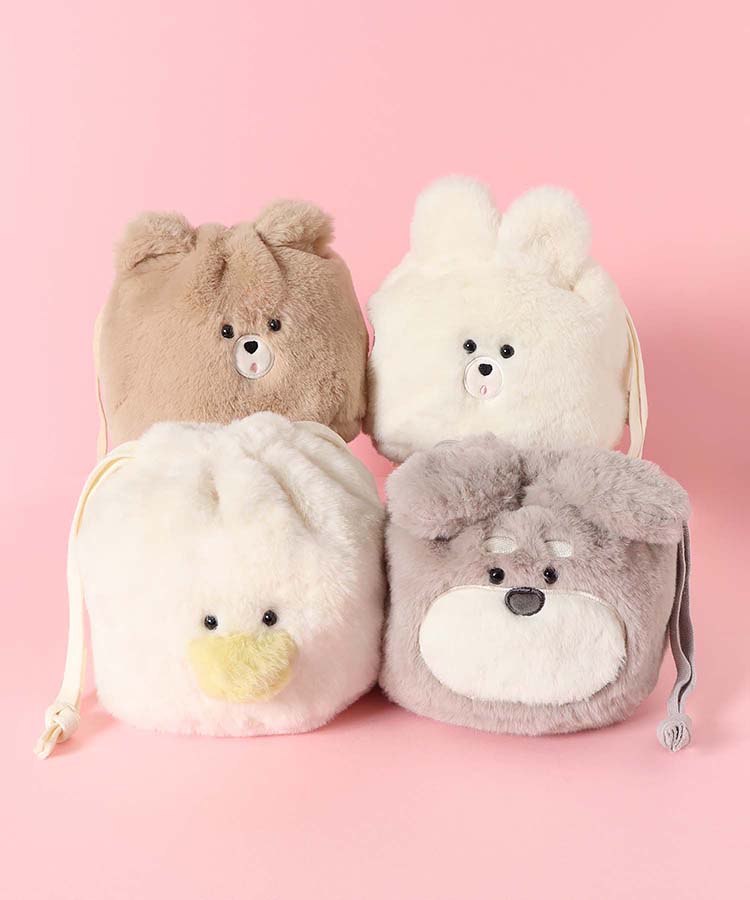 巾着袋 巾着ポーチ レディース 小物入れ ぬいぐるみ くま うさぎ シュナウザー アヒル グッズ かわいい ふわもこ プレゼント スフレベア巾着ポーチ