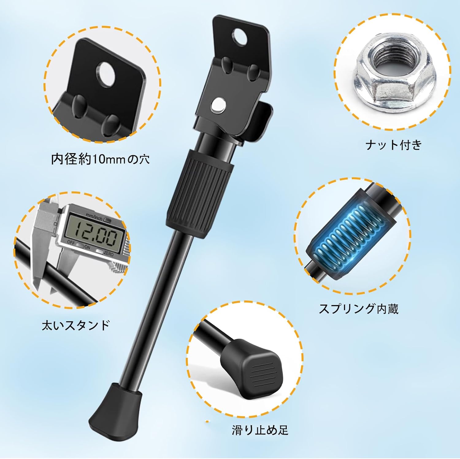 [15日限定10倍P付] CYFIE サイドスタンド 自転車 スタンド キックスタンド 片足スタンド 炭素鋼 汎用 座金 ナット付き