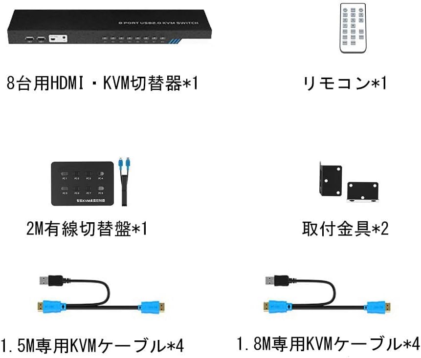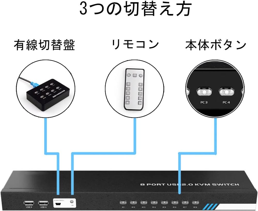 | 本製品は、最大8台のパソコンを1台のモニター+キーボード+マウスで簡単切替操作できるKVMスイッチです。2mの有線コントローラー+赤外線リモコンの2通りで切替でき、作業効率とデスクの整理を両立。エンジニア・IT管理者の複数PC管理に最適です。HDMIポートは最大3840×2160@30Hzの4K解像度および1920×1080@60HzのフルHDに対応。Windows、Mac OS、LinuxなどOS混在環境でも動作可能で、オフィスからラボ環境まで幅広く活躍します。 |