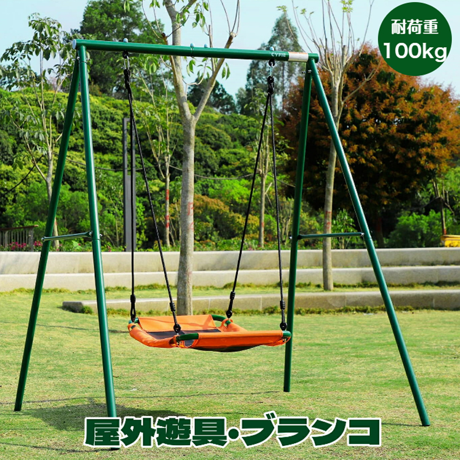 yfie ブランコ 屋外遊具 金属製 ぶらんこ 大型遊具 組み立て簡単 1人位 お庭適用 ブランコセット スイングセット 耐荷重100kg 長方形座板 ぶら下げ 滑り止め 固定くぎ付き 耐久性 庭 アウトドア 防水 誕生日 プレゼント クリスマス 子供の日