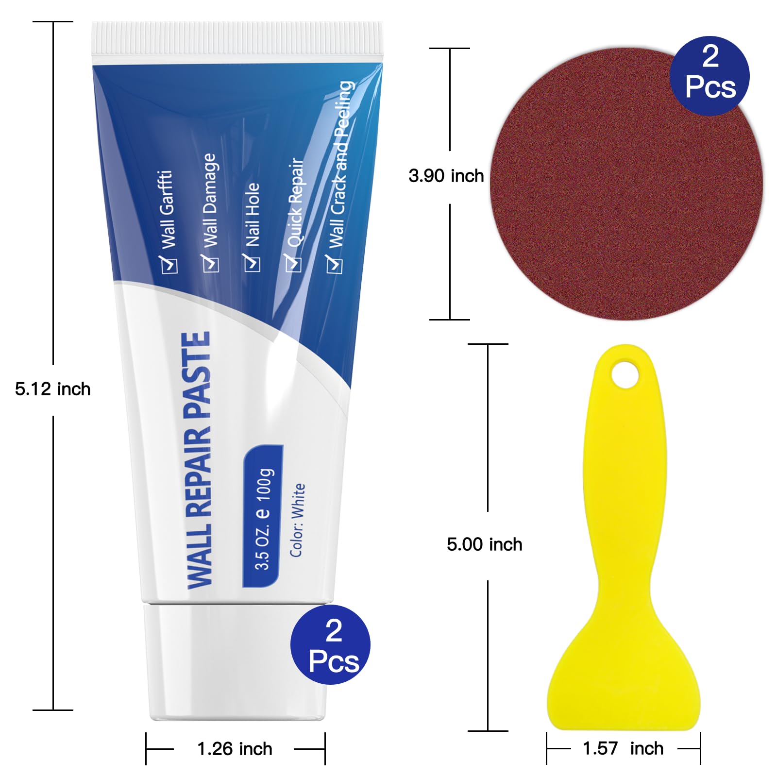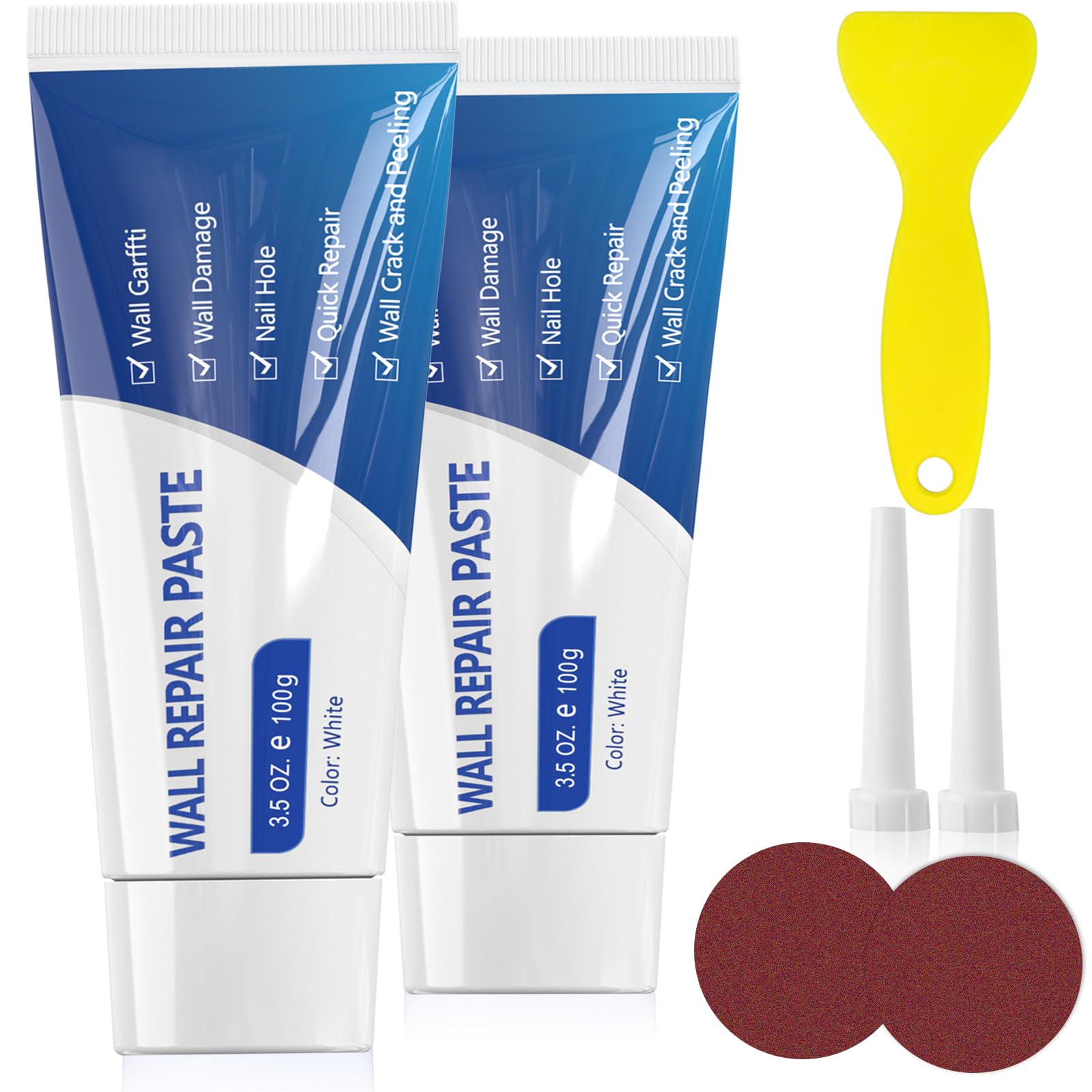 | 壁補修剤(100g*2)、尖った口*2、サンドペーパー*2、ヘラ*1、日本語説明書付きます。 |