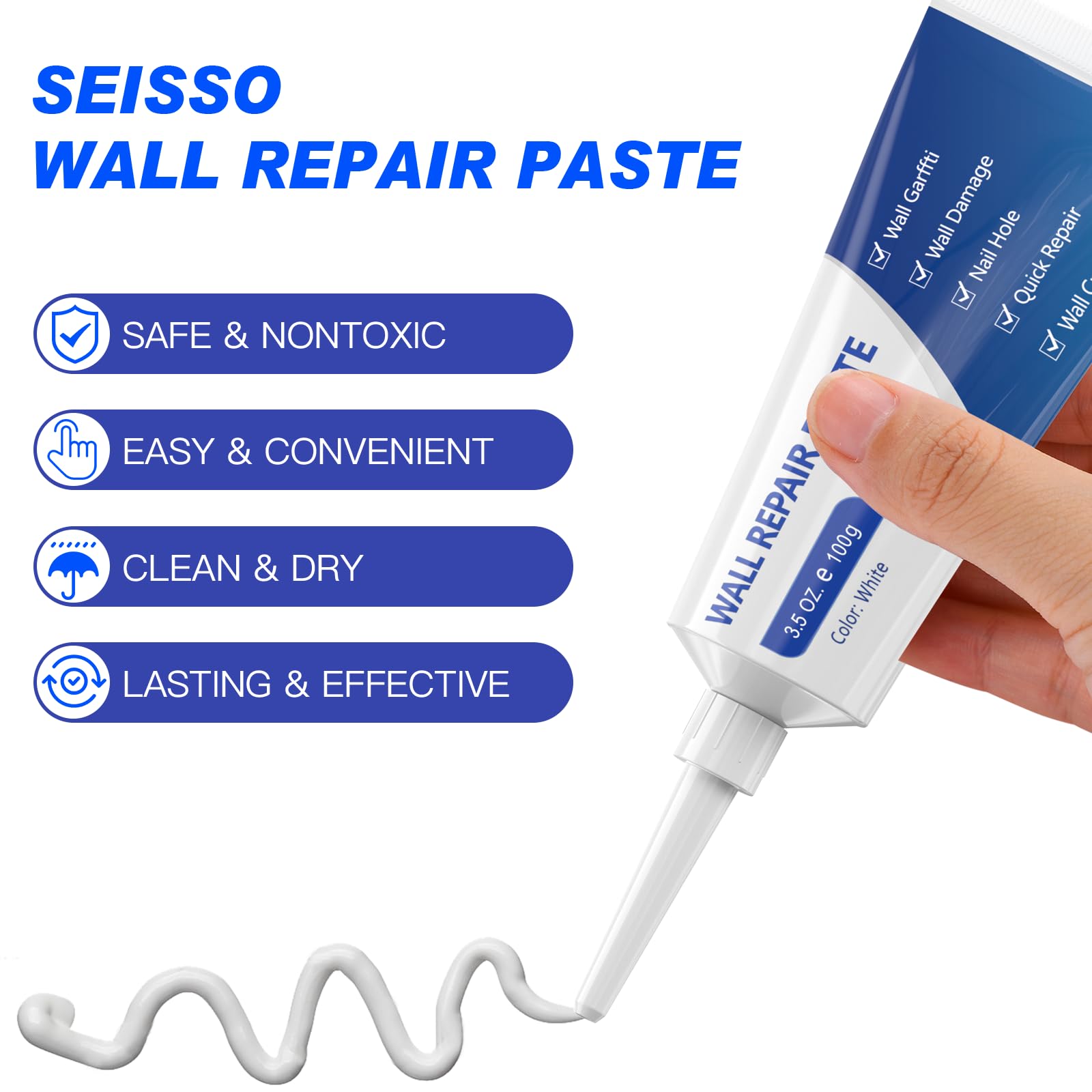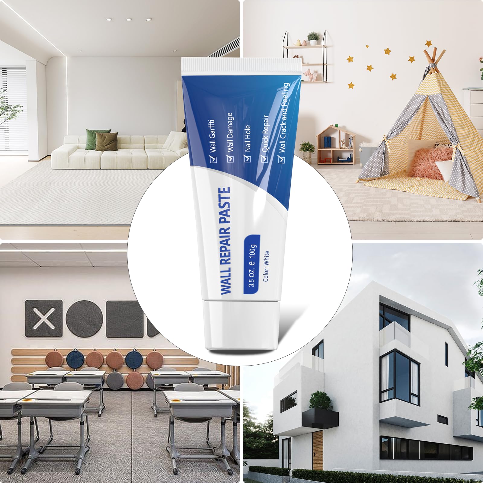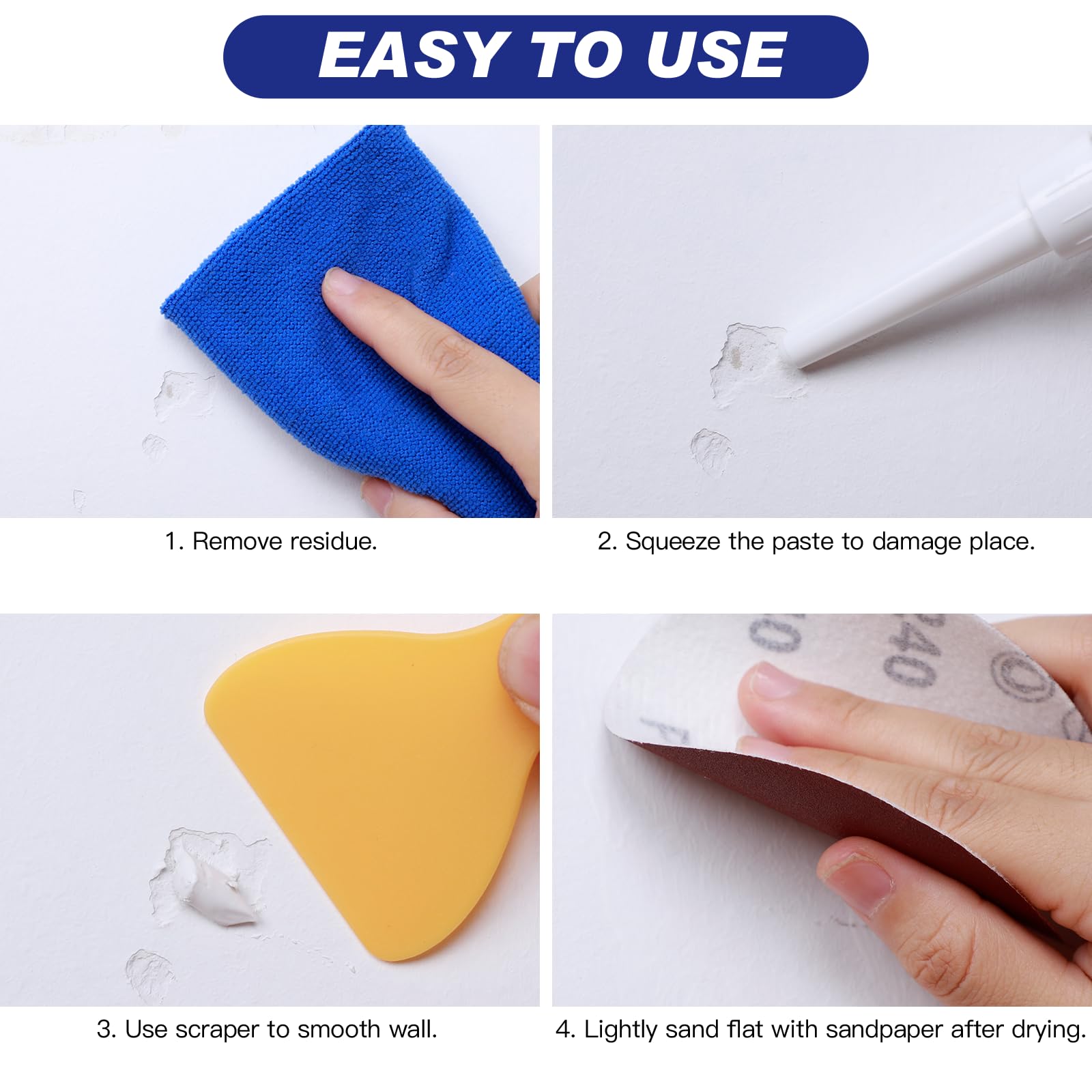 | 1.残留物(汚れやほこり)を取り除きます。2.損傷した壁に壁補修剤を塗ります。3.補修剤をヘラで平らにします。4.乾燥後、サンドペーパーで表面を軽く磨きます 新しいアップグレードされた壁補修剤は、壁用接着剤、合成樹脂、炭酸キャップで作られており、防水性に優れ、ホルムアルデヒド、腐食がなく、有害物質は含まれていません。100%グリーン成分、子供やペット、化学物質に敏感な方にも安全です。 湿度の高い日(雨の日など)に本制品を使用しないでください。涼しく乾燥した場所に保管してください。(壁補修剤の保管温度は -2℃ から 45℃です。)何かご不明な点がございましたら、いつでもお気軽に弊社までお問い合わせください |