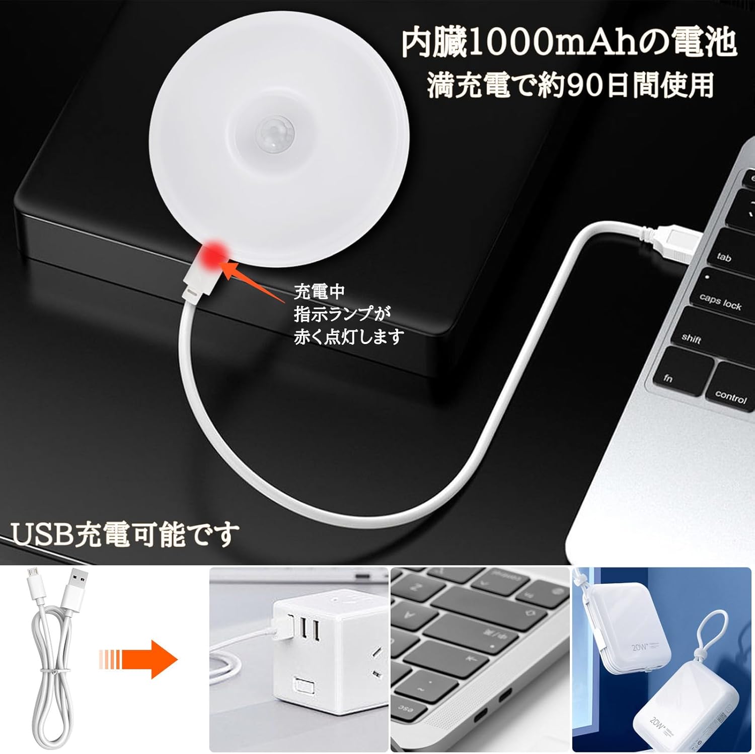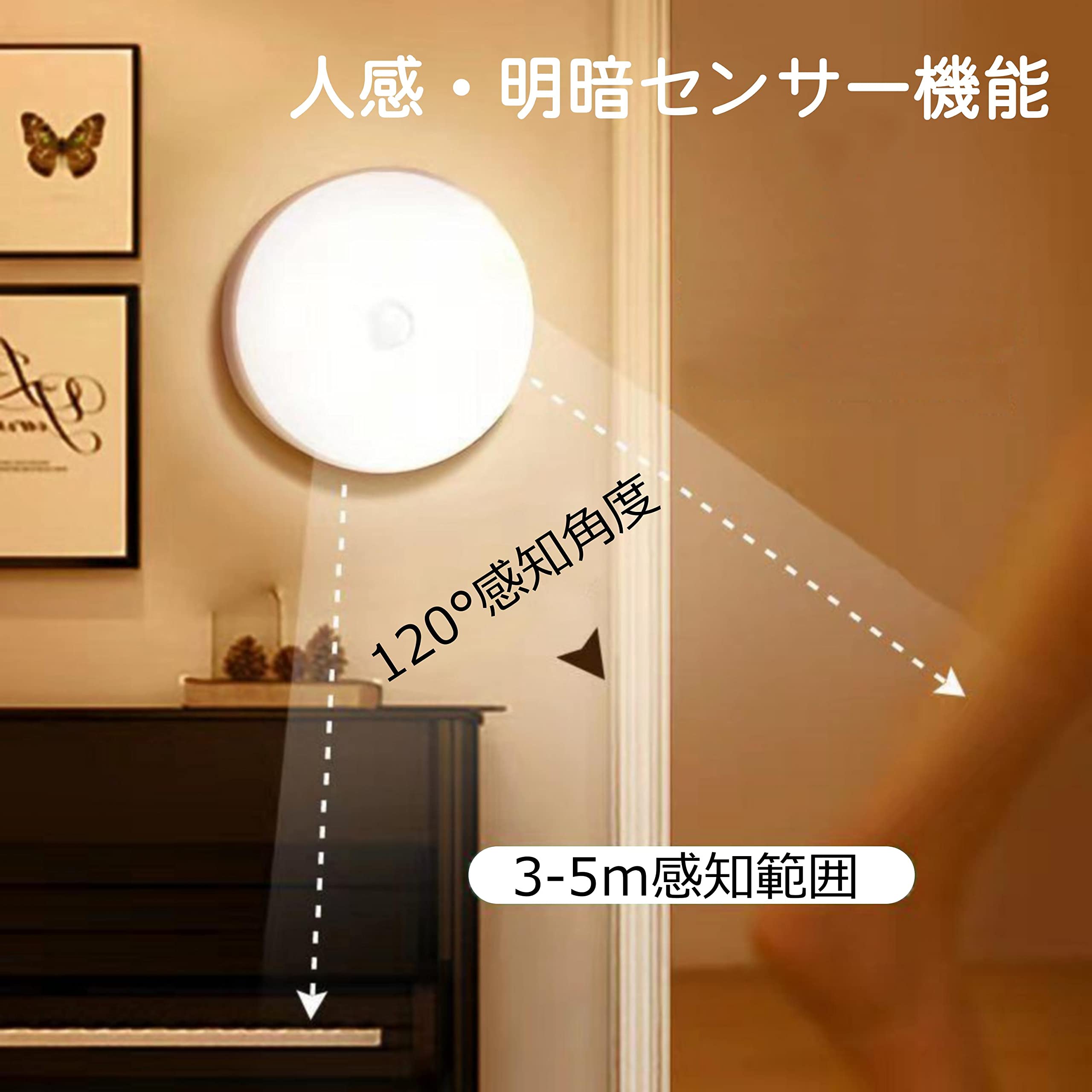 | この人感センサーライトは2つの知能モードがあります。それぞれ人感自動開閉モードと常時点灯ONモードです。暗い環境で動作を検知し、自動点灯ができ、約15秒後動きを検知しないと自動消灯します。 ledセンサーの感知角度は120度で、範囲は本体から約3メートルです。 このUSB充電式人感センサーライトは乾電池式感応灯より、消耗電力が少なく経済的です。 この室内センサーライトは高品質のABS素材を採用し、軽いのと同時に耐久性も強く、より長い使用寿命が可能になります。 |
