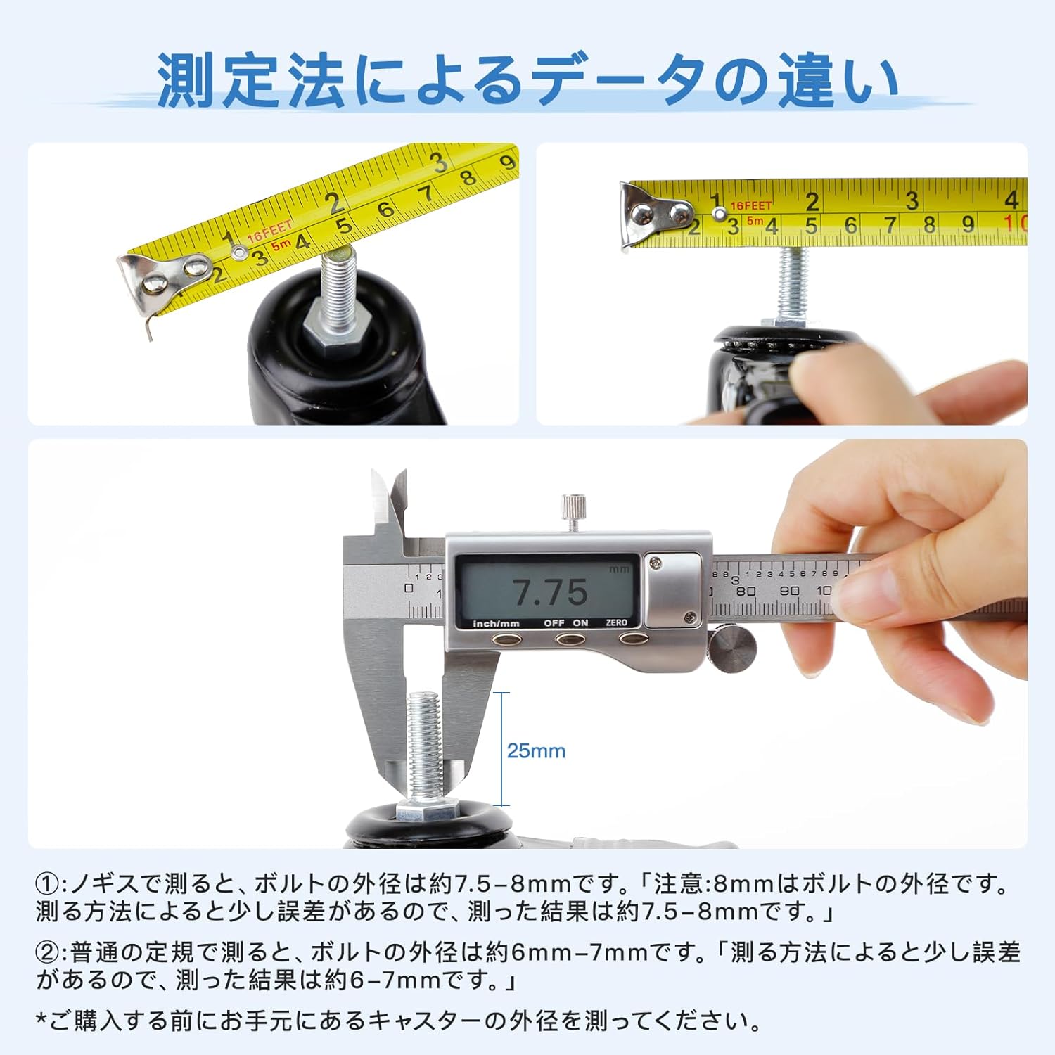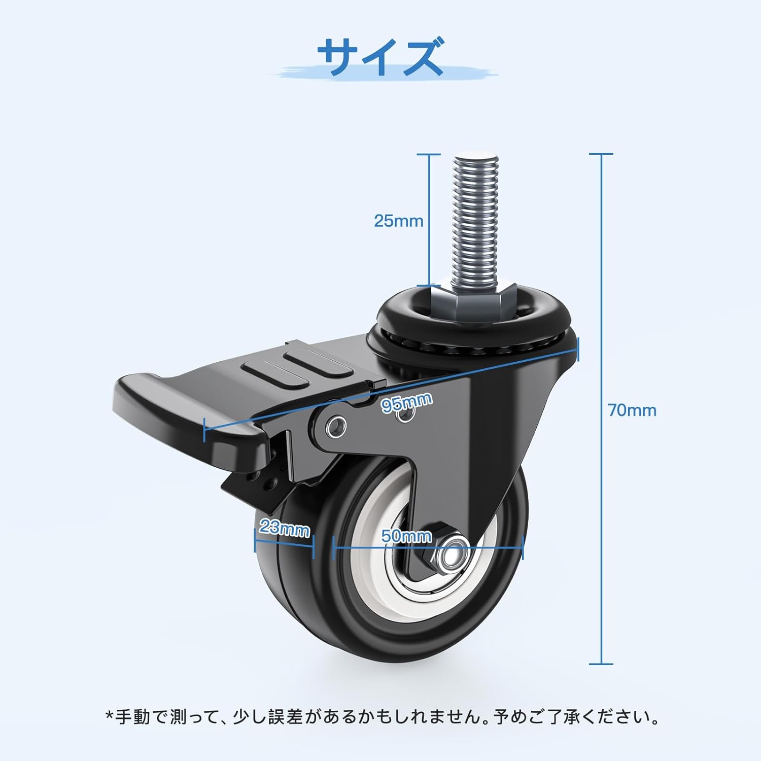 【商品サイズ】★車軸はM8 ★M8のピッチは1.25mm(並目) ★車軸の長さ約25mm ★車輪の直径約50mm ★車輪の幅約23mm ★手動で測って、少し誤差があるかもしれません。予めご了承ください。もし何かご問題がございましたら、ご遠慮なく弊店にお問い合わせください。