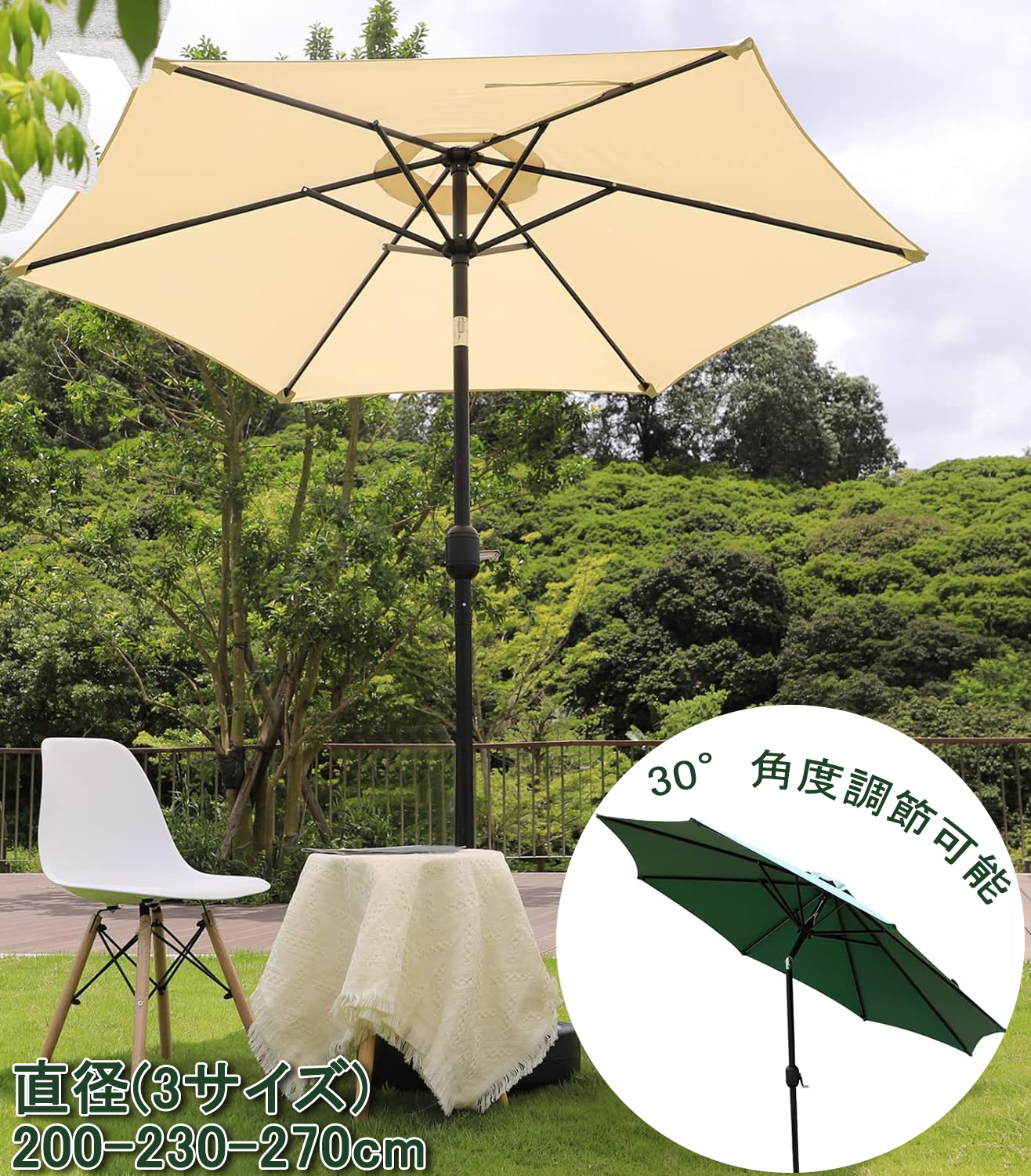 ガーデンパラソル 200/230/270cm パラソル ハンドル開閉 角度調整可能 撥水加工 折りたたみ 軽量 角度調節 ハンドル開閉 テラス 庭 7ヶ月保証 新生活 |