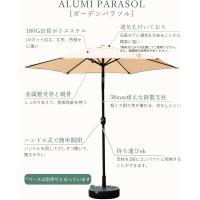 いつもお世話になっております。 本製品展開サイズ:直径200cmx高さ210cm/直径230×高さ223.5cm/直径270×高さ237.5cm 幅200/230cmの物は6本骨仕様となっております。 幅270cmの物は8本骨仕様となっております。 きつい日差しもシャットアウト 日差しが強い日でも外で快適に過ごすことができます。 ・太陽の位置に合わせてワンタッチで角度調整 傘の角度を変えることができるので、きつい西日もしっかり防ぎます。 ・ハンドルをくるくるさせるだけで簡単開閉 クランク式なのでハンドルを回すだけで簡単に開閉できます。 ・レジャーパラソルと建てるための必需品 大きなパラソルをたてるのは、不安定なもの。風でパラソルが飛んでしまうことを防止するためのグッズ。水を入れて使用し、安定感が得られしっかりと立てることができるので、アウトドアグッズとしてパラソルとセットでの準備がおすすめ。 ・現地で水を入れれば持ち運びラク 本体重量は1500gと軽く、子どもでも持ち運べる重さ。水を入れればその重量で安定してパラソルを立てることができる。水を入れた時の重量は21.5kgにもなるので、強い風が吹いても倒れることなく使える。 ご注意: 海外製品の為、縫製基準が日本と異なるケースもあることから縫製が甘い?雑?糸の始末ができていない等がみうけられる場合もございます、不良ではありません。 *ディスプレイや写真の光の加減や角度により実物の色が多少異なる場合がある。 ぜひお勧めしたいです! |