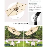 太陽の位置に合わせて角度調整 | 日射しの向きに合わせてワンタッチでパラソルの角度を変えられるチルト機能つきます。簡単かつ効果的に直射日光を遮り、熱中症予防にも役立ちます。 | |