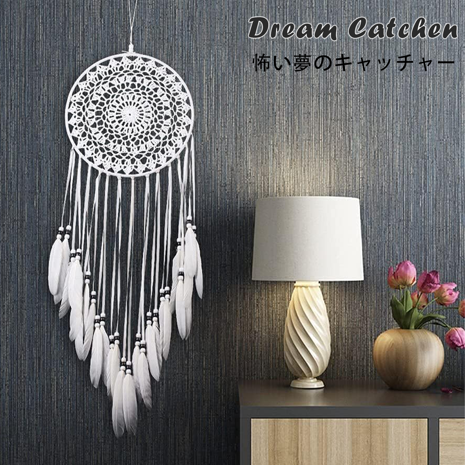 | ◆高品質の素材 | 真羽はスモークプロセスを経て、綺麗で安全です。輪っかにクモの巣状の網目をはり、羽を下げたネイティブ・アメリカンの装飾品。 | |