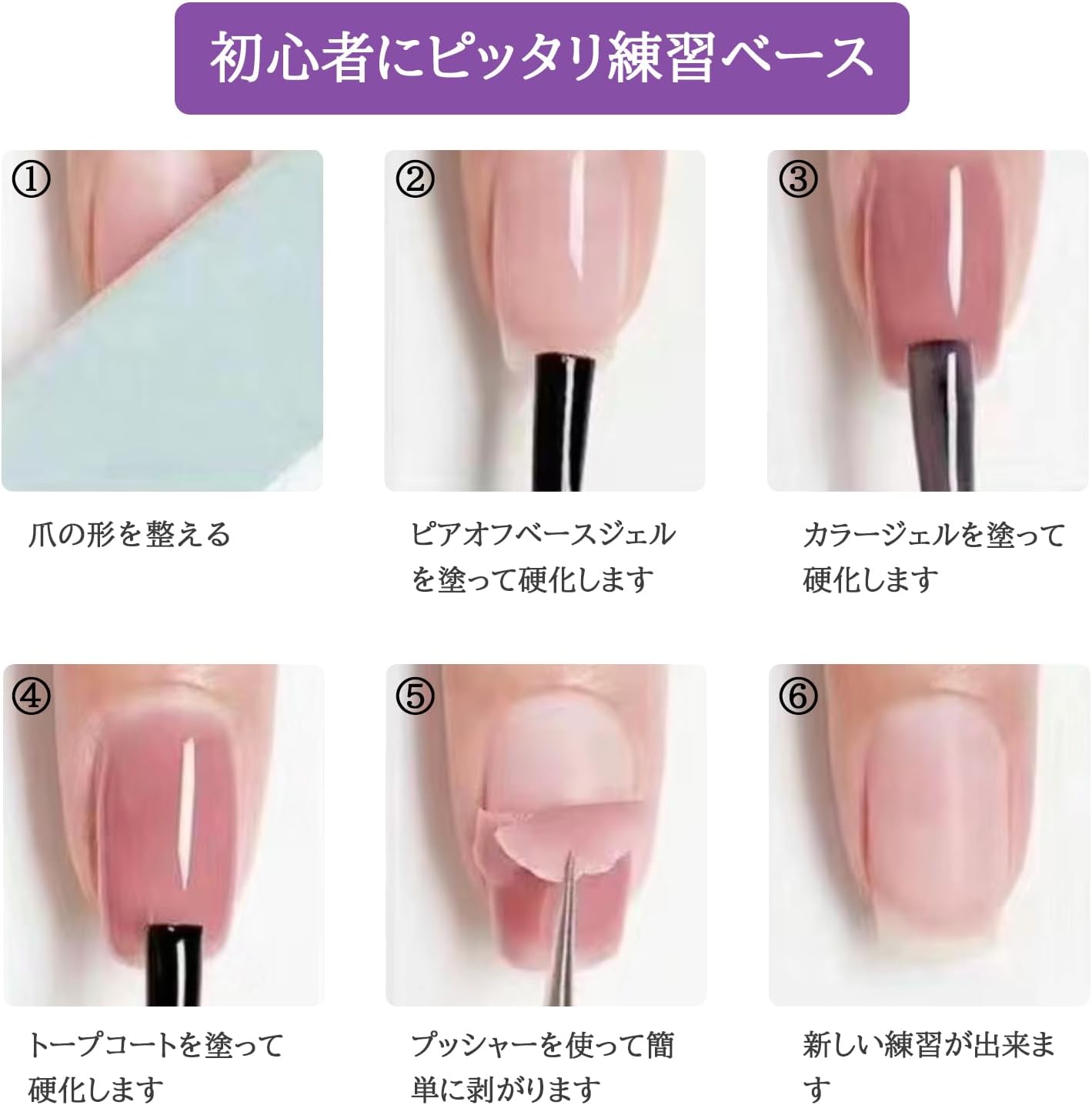 | ◆対象 | 短期間だけネイルを楽しみたい方、オフが面倒でジェルに手を出しづらい方、検定前の練習でオフに時間を取られる方、頻繁にデザインを変えたい方、爪を保護する方。 | |