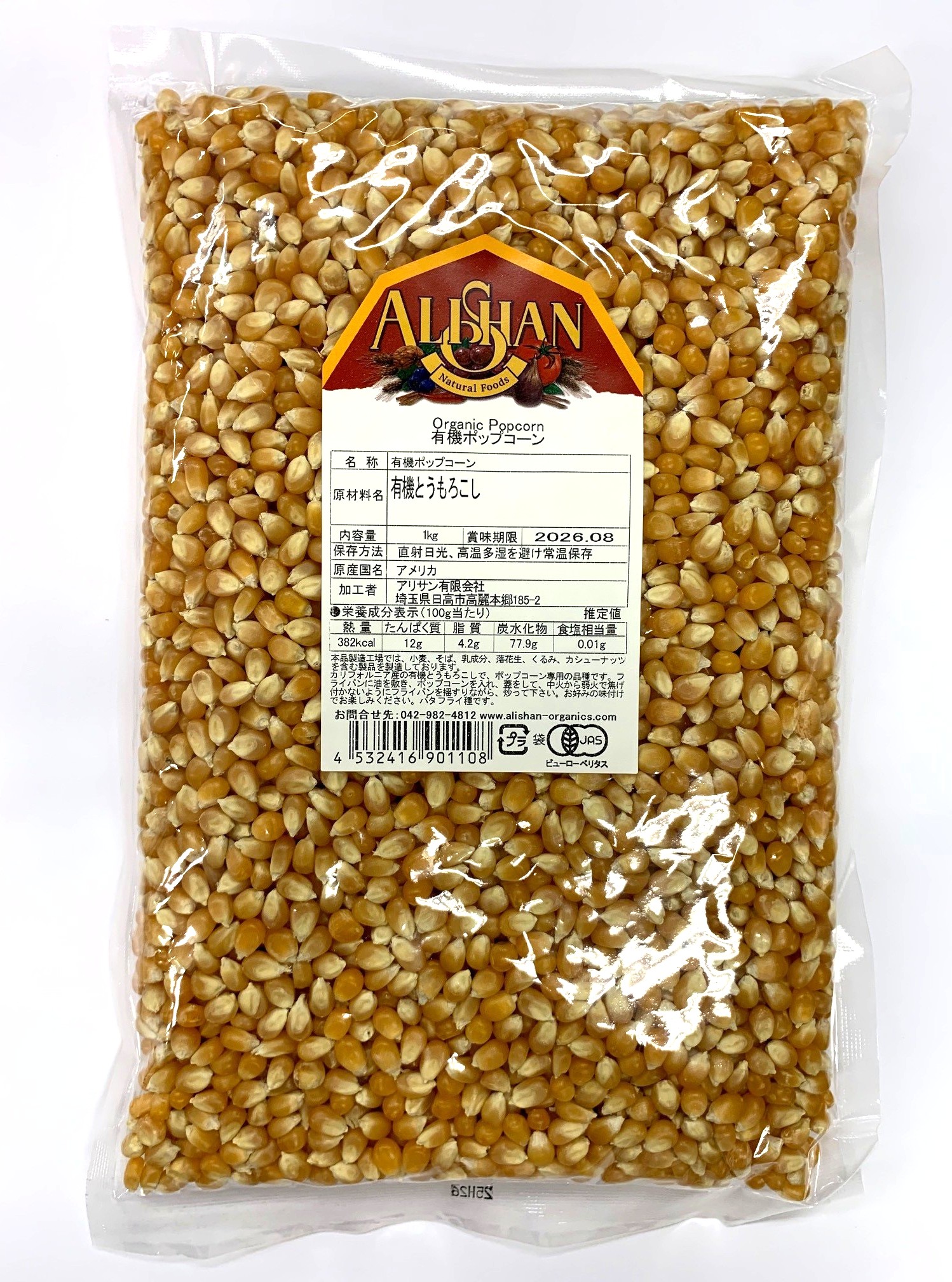 カリフォルニア産の有機とうもろこしで、ポップコーン専用の品種です。なべで加熱し好きな味付けを。