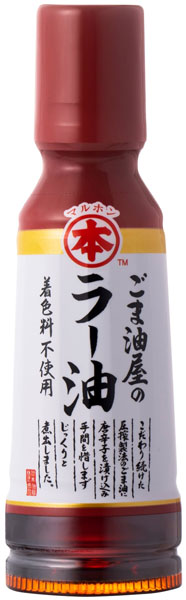 圧力だけで絞り、余分なものは使わない圧搾製法。唐辛子を純正ごま油でじっくり煮出しました。ごま本来の旨味が活きる、すっきりした強い辛味が特徴のごまラー油です。