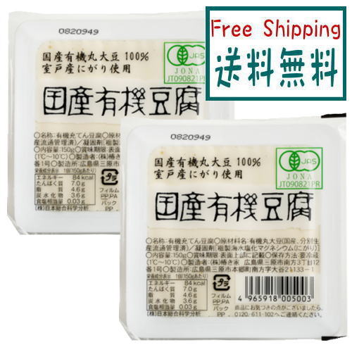 送料無料 国産有機豆腐 150g x2個セット【冷蔵】低カロリー イソフラボン コレステロール 中性脂肪 基礎代謝 善玉菌 ビフィズス菌 乳酸菌 送料込み