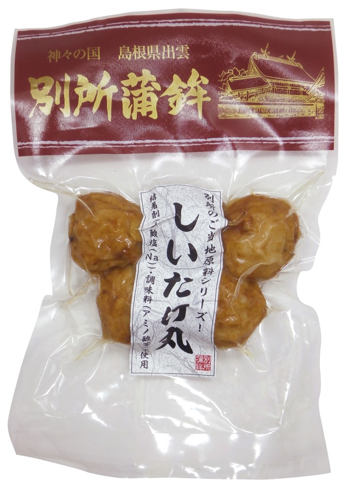 しいたけ軸(島根県)、魚肉(日本又はニュージーランド)、食用菜種油、馬鈴薯澱粉、砂糖、魚醤(イワシ、食塩)、食塩、鰹だし、昆布だし、味醂