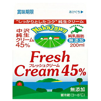 送料無料 中沢フレッシュクリーム 45% 200ml×4個セット【冷蔵】