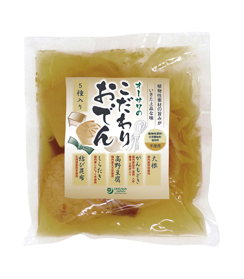 特別栽培大根(国産)、がんもどき[大豆・枝豆・れんこん・にんじん・椎茸・大和芋(国産)、なたね油、食塩(海の精)/にがり(粗製海水塩化マグネシウム)]、高野豆腐[大豆(国産)/にがり]、しらたき[こんにゃく粉/水酸化カルシウム)]、昆布(北海道産)、醤油、本みりん(もち米、米麹、米焼酎)、食塩(天塩)、酵母エキス