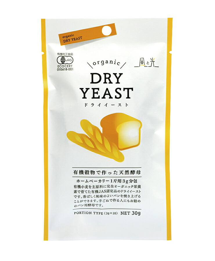 送料無料 風と光 有機穀物で作った天然酵母(ドライイースト)分包 30g(3g×10包) x4個セット