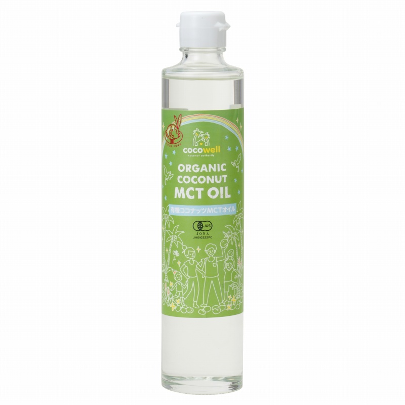 MCT約92%。C8 (カプリル酸):61.4%、C10(カプリン酸):20.1%、C12 (ラウリン酸):10.7%。有機バージンココナッツオイルを原料にオイルを加熱せず、温度を下げていき、固まる脂肪酸を取り除く、こだわりの「非加熱・自然な製法」で作っています。ココナッツオイルの特長である抗菌力の高い「ラウリン酸」も含む有機JAS認証取得のMCTオイル。低温でも固まりにくいので野菜ジュースやスムージー、サラダなどに。ほんのりと残るココナッツの香りが、コーヒーとの相性が抜群です。