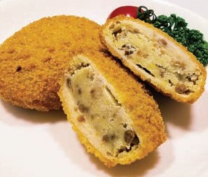 じゃがいも(国産)、牛肉、玉ねぎ、砂糖、牛乳、しょうゆ(大豆を含む)、乾燥マッシュポテト、食塩、衣(パン粉、小麦粉)、揚げ油(なたね油)、(一部に小麦・乳成分・牛肉・大豆を含む)