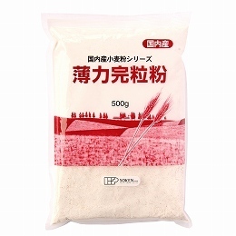 ○ふすまを含む完粒紛ですので食物繊維が豊富です。毎日のお料理やお菓子作りにご利用下さい。 ※下記注意事項をお守り下さい。(生地中の水分や空気が急激に加熱膨張して油が飛び散り、やけどをする危険があります。)ドーナツ、アメリカンドックなど小麦粉100gに対し80cc以下で練った生地を揚げる場合は、砂糖10g以上とベーキングパウダー3g以上の両方を必ず入れて下さい。