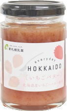 札幌市厚別区にある食品工場の川西製餡所とのコラボ商品。 新札幌生産の生クリームをコンバインドチャーンで丁寧に造り上げたバターを川西製餡所で北海道産イチゴのジャムを合わせました
