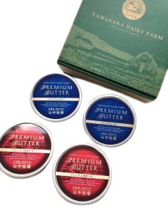 山中牧場 プレミアムバター200gの赤缶(発酵(有塩)、青缶(有塩)をギフト用にセットにしました。