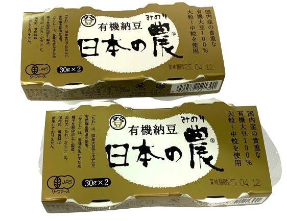 登喜和 有機納豆 日本の農(みのり)カップ 60g(30g×2) x2個セット【冷蔵】