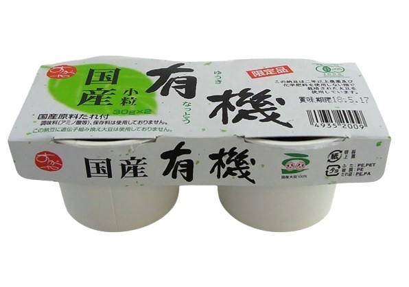 北海道産有機栽培大豆を使用。添付のタレは国産原料のみを使用したこだわりのタレです。