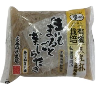 栽培から加工までJAS有機加工食品の基準をパスしています。こんにゃく芋の成分を捨てることなく全部使い作り上げています。この芋しらたきはお湯の中であくをぬいてありますのでこのまま調理できます。味しみがよく風味があり、違いがわかる商品です。使いきりのミニサイズです。