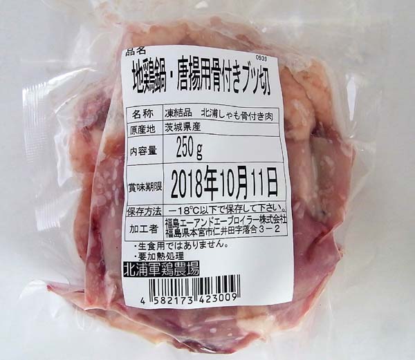 地鶏・北浦シャモは、オス90日、メス100日以上と通常ブロイラーの2倍弱の飼育期間があり、全期間を無薬・非遺伝子組み換え飼料で飼育しております。ブロイラーと比べると多少肉は硬めですが、味のある美味しい肉です。アクも少なく、鶏肉独特の「畜臭」もなく、滋味豊かなスープが取れます。もちろん骨付きですので、唐揚や煮物でも美味しく召し上がれます。