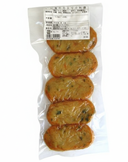 魚肉(たら(国産))、馬鈴薯澱粉、菜花、かつおだし、砂糖、食塩、発酵調味料、菜種油