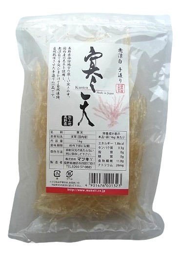 長野県諏訪地方の厳しい寒さの中、国産の天草のみを使用し、無添加・無漂白にこだわり手間ひまかけて自然凍結、自然乾燥させた手作りの糸寒天です。
