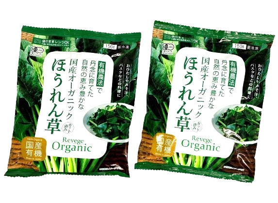 Revege 国産オーガニック カット済みほうれん草 150g x2個セット【冷凍】