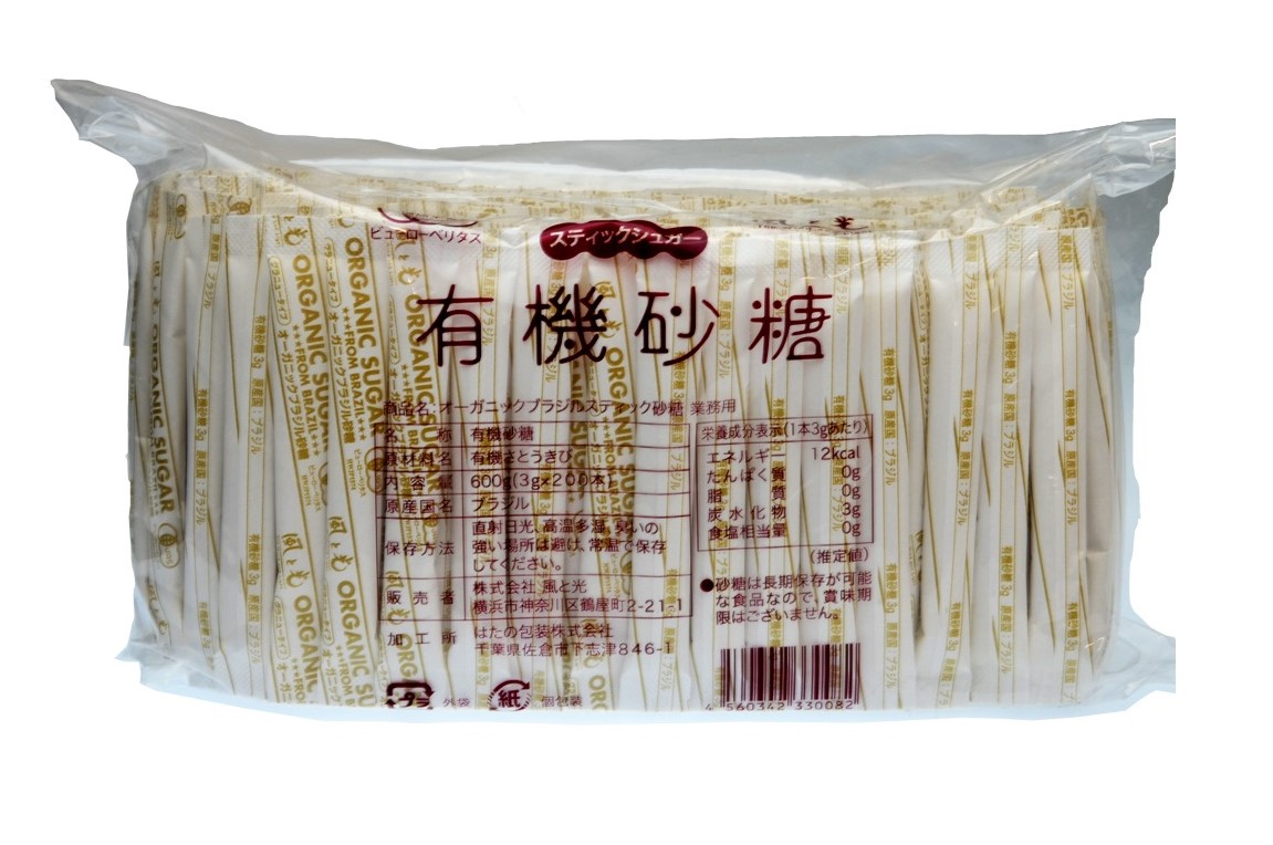 送料無料 風と光 有機砂糖 オーガニックブラジル砂糖 スティックシュガー(3g×200包)600gx2 セット
