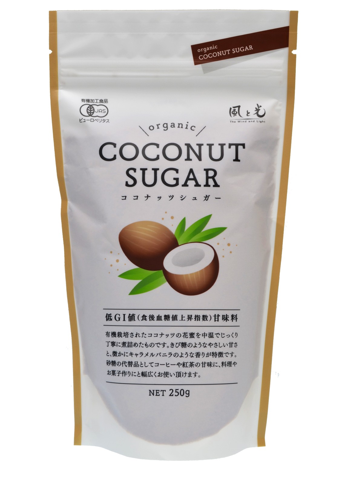 ●栄養豊富。精製された白砂糖(GI値:110)には糖質の代謝に必要なビタミンB群が含まれておりませんが、ココナッツシュガーにはバランス良く豊富に含まれております。人は発汗により電解質を消耗し、さまざまな症状が引き起こされますがココナッツシュガーにはこれを補うナトリウム、カリウム、塩素、カルシウム、マグネシウムが豊富に含まれております。また、人体組織を構成しているタンパク質の元になる20種類のアミノ酸のうち16種類アミノ酸がバランス良く含まれていてエネルギー代謝を促進し細胞の老化を防ぎます。また、腸内細菌の生育を促進する食物繊維イヌリンが含まれ腸内細菌のバランスを整えます。