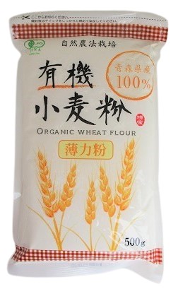 青森県産の有機小麦を使用した安全な小麦粉です。天ぷらやお好み焼きに。クッキーやケーキなどのお菓子作りに。