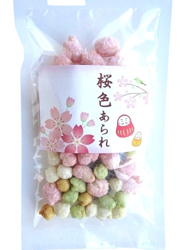 春限定あられ。国産有機もち米100%使用。着色料不使用。可愛らしい桃色あられをメインとした、春の色合いをイメージしたあられミックスです。ピンク色はビーツパウダー、緑は有機抹茶、白色は有機砂糖、茶色は自社で煮出した出汁に有機醤油やみりんなどを加えた特製だし醤油で味や色づけをしております。