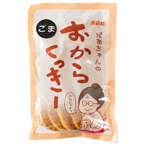 国産大豆を原料にした「おから」と、国産小麦(九州産)、国産粗糖(種子島産)、圧搾法一番しぼりの菜種サラダ油を練り合わせ、、国産の黒ごまなどを入れて焼き上げた素朴なお菓子です。