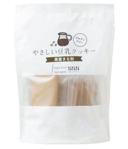 豆乳のおいしさ活かしたまろやかなグルテンフリークッキー。黒蜜と香ばしきな粉の和クッキーです。植物原料でシンプルにつくるやさしい味わい。小麦・乳(バター)・卵・膨張剤不使用、専用ラインで製造。