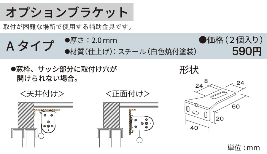 ロールスクリーン 立川機工 FIRSTAGE用 オプション ブラケット Aタイプ