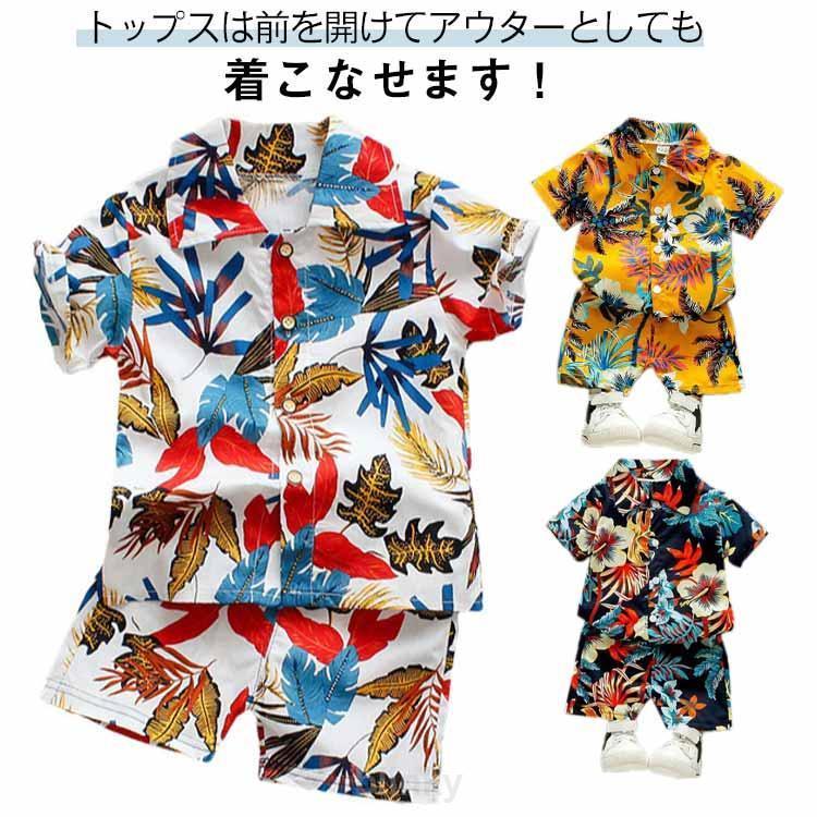 男の子 カジュアル ベビー服 男の子 ハワイ風 アロハ 半袖 ひんやり セットアップ ショートパンツ 薄手 上下セット 子供服 80 ベビースーツ キ