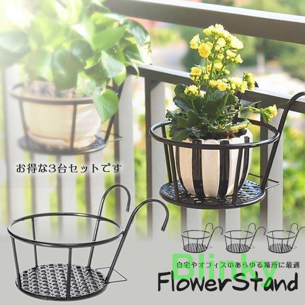 ハンギング フラワーポット スタンド 3台セット 花 観葉植物 鉢 バルコニー ベランダ 庭 壁掛け