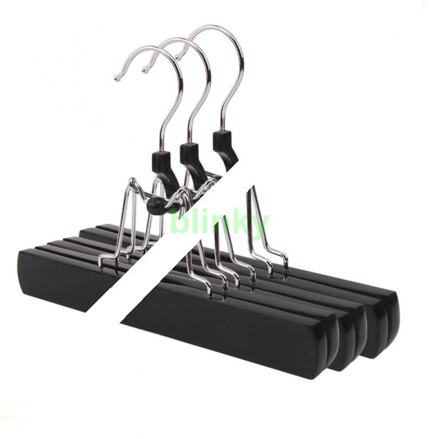 天然木製ズボンハンガー 10本組 ブラウン スカート吊りハンガー 跡がつかない 360度回転式防錆加工フック 型崩れ防止 省スペース パンツ ボトムス スラックス