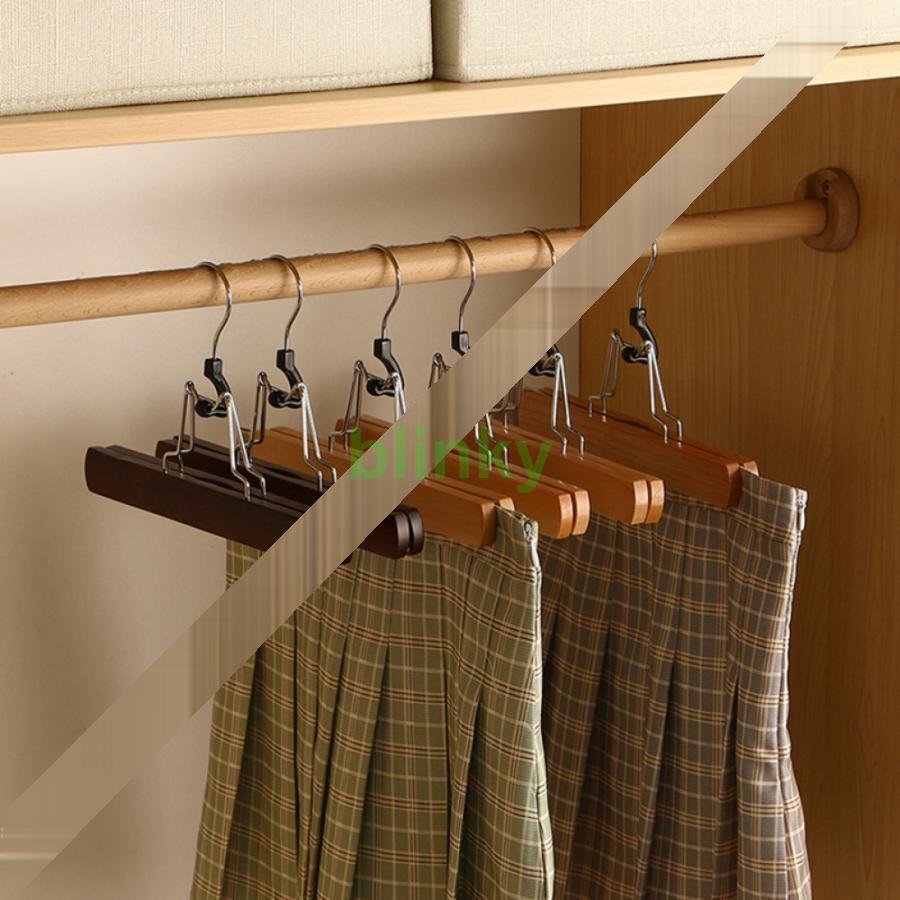 ズボンハンガー 木製 スカート 跡がつかない ズボン用 ナチュラル色 かつらハンガー 12本組セット 型崩れ防止 省スペース パンツ ボトムス スラックス 胡桃色