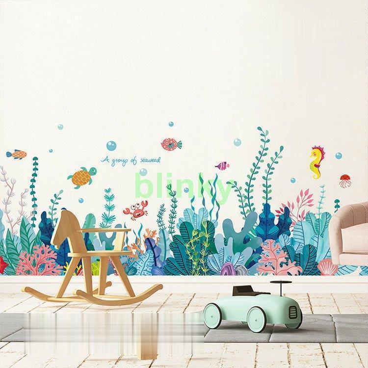 インテリア 雑貨 ウォールステッカー ルームデコ 壁紙デコ 壁紙シール 海 カニ 亀 魚 ポップ カラフル グリーン ピンク レッド
