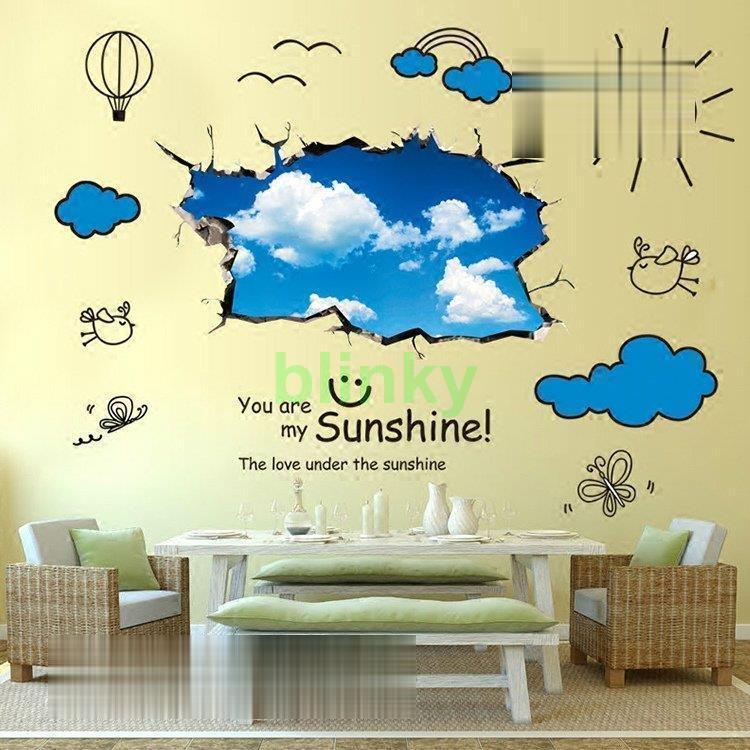 インテリア 雑貨 ウォールステッカー ルームデコ 壁紙デコ 壁紙シール 模様替え 空 イラスト ポップ 雲 ブラック ブルー