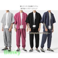 甚平 半袖 ルームウェア メンズ 無地 オーバーサイズ 黒 カジュアル ボトムス 安い イベント 上下 セット 長ズボン 高級 大きいサイズ 部屋着 夏 薄手 シンプル