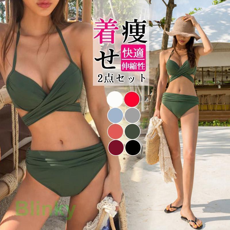 水着 レディース ビキニ 2点セット 水着 体型カバー ノンワイヤー リボン ホルターネック セパレート 海水浴 温泉 ビーチ 大人 おしゃれ 韓国風
