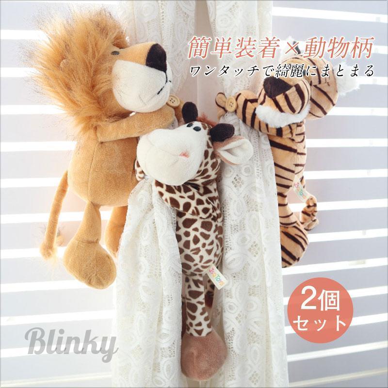 動物柄 カーテン タッセル 2個セット かわいい ライオン 留め具 インテリア 北欧 おしゃれ シンプル 紐 子供用 プレゼント