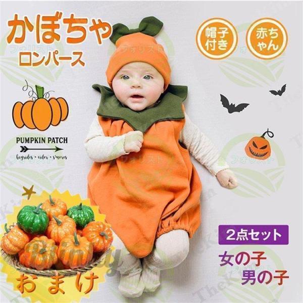 ハロウィン かぼちゃ ロンパース ベビー服 カボチャ 衣装 帽子付き 着ぐるみ パンプキン コスプレ可愛い イベント 撮影 写真 誕生日 出産祝い